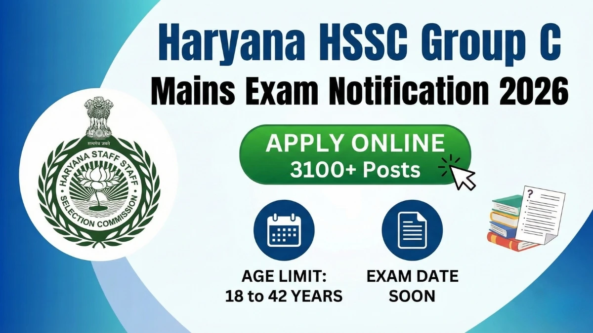 Haryana Staff Selection Commission (HSSC) has released an official notification for the recruitment of 3112 Group C Mains posts. Interested and eligible candidates can apply online through the official website of HSSC. Last date for submission of application form is 15-02-2026. In this article, you will get HSSC Group C Mains Post Recruitment details, including eligibility criteria, age limit, salary structure, selection process, application steps and direct links to official notification and online application form.
